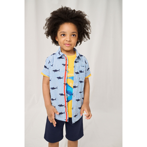 They can jump, climb, and roll with ease in these navy terry shorts! Perfect for day camp or beach vacations, they are machine washable so his adventures can get as messy as they please.