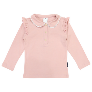 Dress your little darling in the essence of classic charm with our Frill Collared Cotton Blouse in Dusty Pink. This blouse exudes timeless elegance with its delicate lace detailing on the collar and graceful frilled shoulders. Soft to the touch, our luxurious cotton fabric ensures your child feels as beautiful as they look. Perfect for family gatherings or playground adventures, it's not just a blouse, it's a wardrobe staple that promises comfort and style. It's easy to pair with any bottom and even easier to fall in love with at first sight.