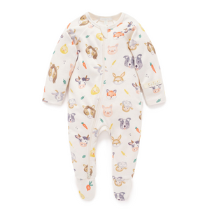 Purebaby Thick Zip Growsuit - Farm Friends Print