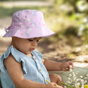 Toshi presents the classic Sunhat Spell, ideal for children of all ages. The sunhat has a broad and well-structured brim. The UPF 50+ UV rating indicates maximum sun protection. The head tie with toggle creates adjustable sizing. A chin tie with toggle secures the hat for ease of wear. The security release clasp on the chin tie is designed to enhance wearer safety. The classic Toshi Sunhat is crafted from the finest quality 100% cotton and is fully lined for additional comfort.