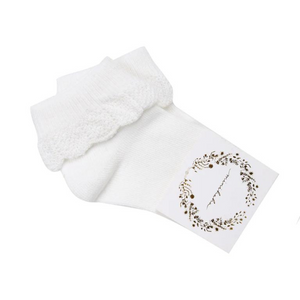 These gorgeous cotton blend socks with a cute turnover top finished with a scalloped lacey trim provide comfort and warmth and will compliment any outfit.