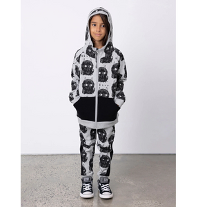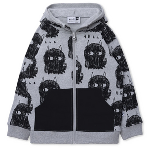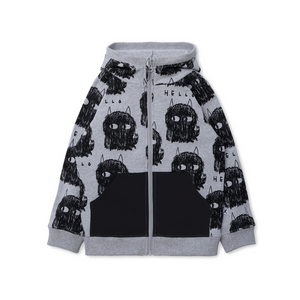 Minti - Hello Monsters Furry Zip Up - Grey Marle