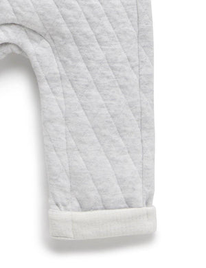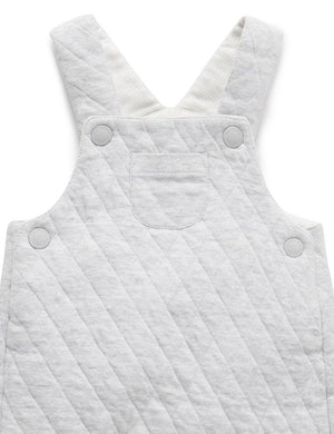 Purebaby Quilted Overall in soft grey melange. Features engraved snap buttons on the front, two snap side buttons and along inner leg for easy dressing. Perfect for layering during the cooler days.