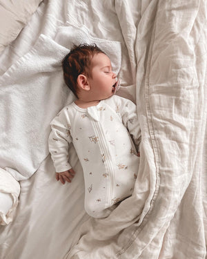 Essentials Zip Growsuit designed for practicality and comfort. Featuring a full length double zip for the easiest of dressing. With long sleeves, inbuilt feet and optional turn-over mittens in sizes 0000-000, your newborn will be kept covered and warm. Made from the softest 100% Organic Cotton for a soft and gentle touch against your baby's delicate skin.