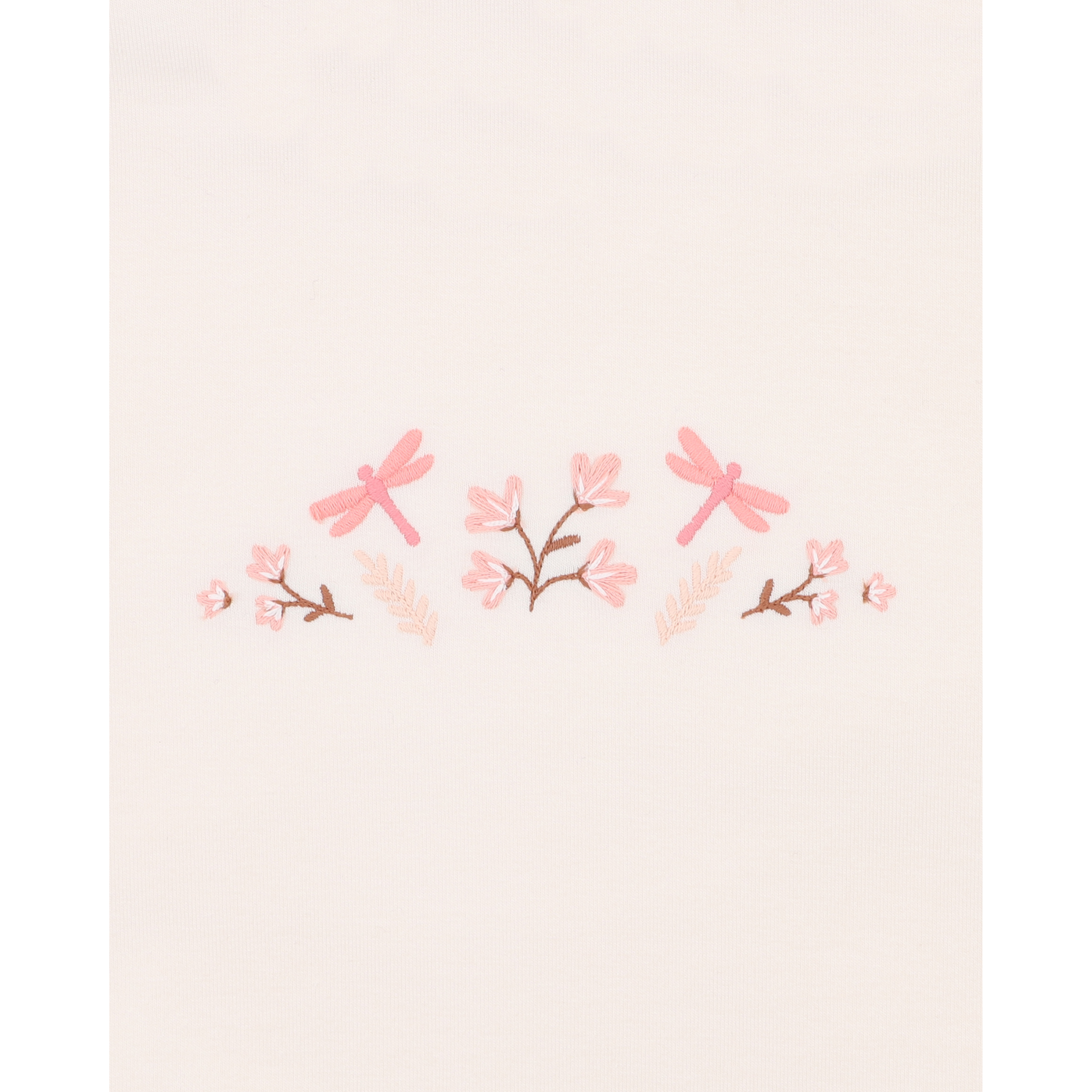 Soft cream tone with embroidered dragonflies and blossoms