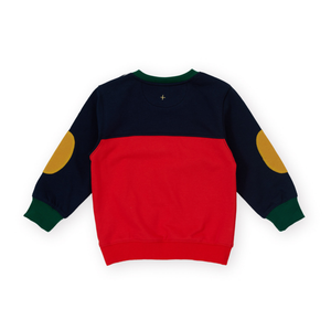 Brighten up your child's wardrobe with this vibrant sweater from Goldie + Ace. Featuring a functional front snap pocket and applied elbow patches, it's both practical and playful. The signature brand badge adds a touch of distinction. Designed in Australia, this mid-weight loop back terry fabric is crafted from 100% cotton, exclusive of trims.