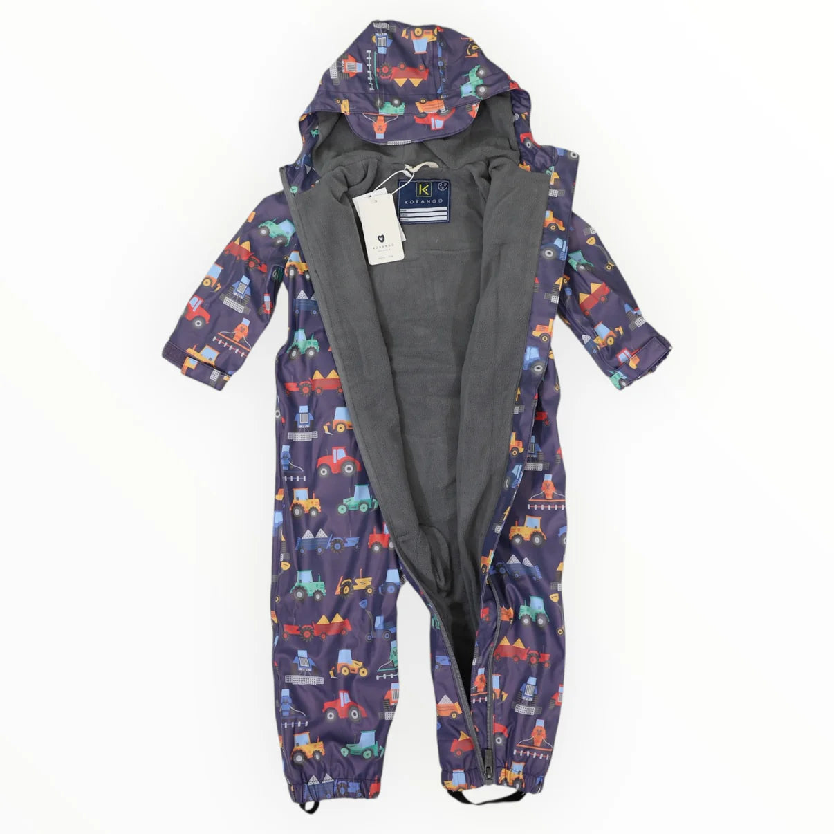 Keep your little adventurer dry and stylish with Korango's Australian Animals Rain Suit! Featuring a waterproof exterior, cozy fleece lining, and hood, this suit is as functional as it is fashionable. The YKK zipper, adjustable velcro wrists, elastic ankle cuffs, and foot straps ensure a snug fit for active kids. It's perfect for rainy day fun!