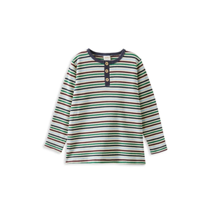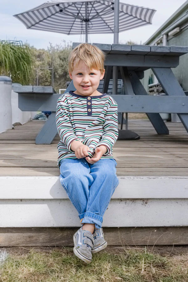 Milky Clothing Heritage Waffle Henley is the ultimate layering piece for chilly days. With an all-over heritage stripe in tones of navy, green and burgundy, this long sleeve top is full of timeless charm. The waffle texture adds warmth and comfort, while the functional three-button placket gives it that classic Henley style.