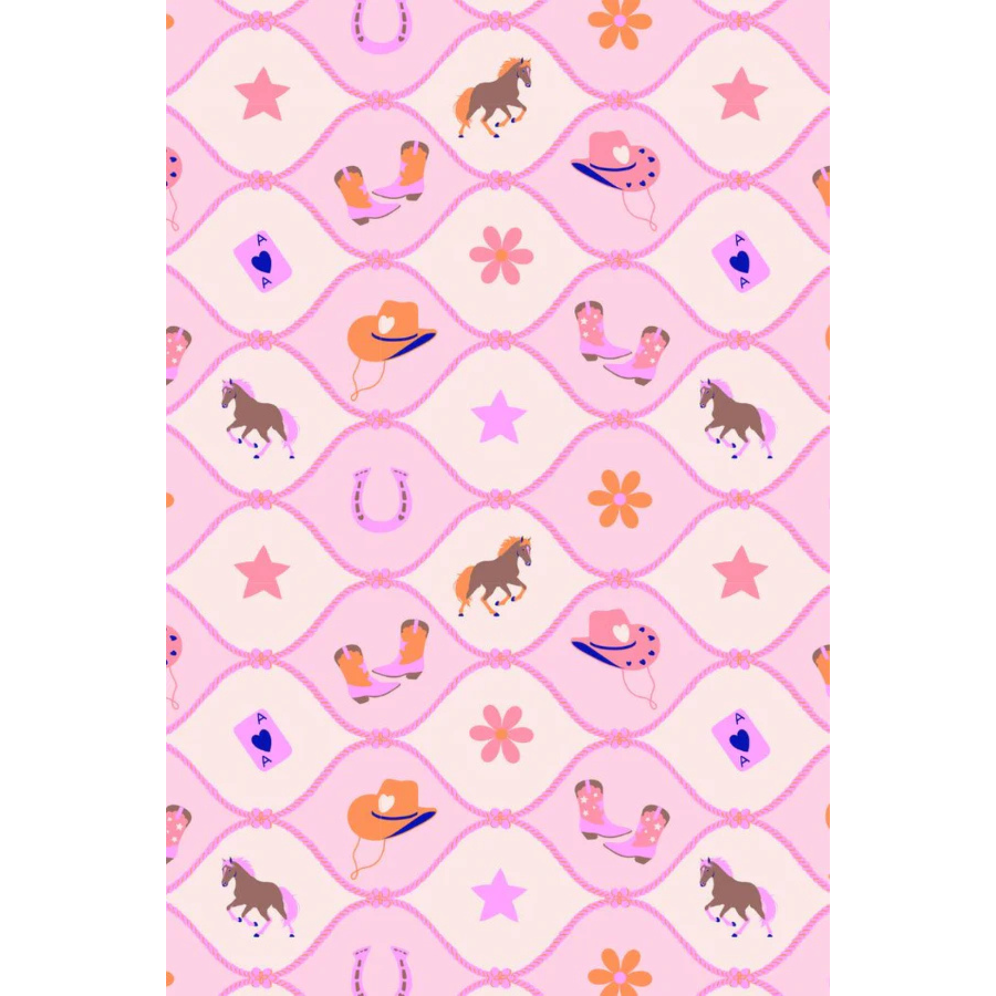 Milky Clothing Rodeo Dreams PJs. Saddle up for sweet dreams in Milky’s Rodeo Dreams PJs! This two-piece sleep set features a playful western print with horses, boots, stars, and lassos all set against a soft pink base. With ribbed cuffs and a comfy elastic waistband. Pair with the Rodeo Dreams Zip Romper for adorable sibling or family PJ moments—yeehaw!