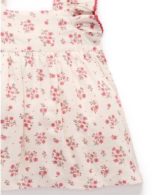 Our pretty Blossom Dress is the perfect style for those warmer special occasions. Featuring an sweet all over floral print with ruffle details at the shoulders. Made from the softest 100% Organic Cotton with a hailspot detail, this dress is easy care and lightweight. Style with our matching Blossom Bow Headband for a cute and coordinated outfit.   Ruffle detail at the shoulder All over floral print Gathered skirt Buttons at the back for easy dressing Made from 100% Organic Cotton   This item is available in both baby & kids sizing. Perfect for matching with siblings, cousins and friends, or purchase multiple sizes for wear in future years.
