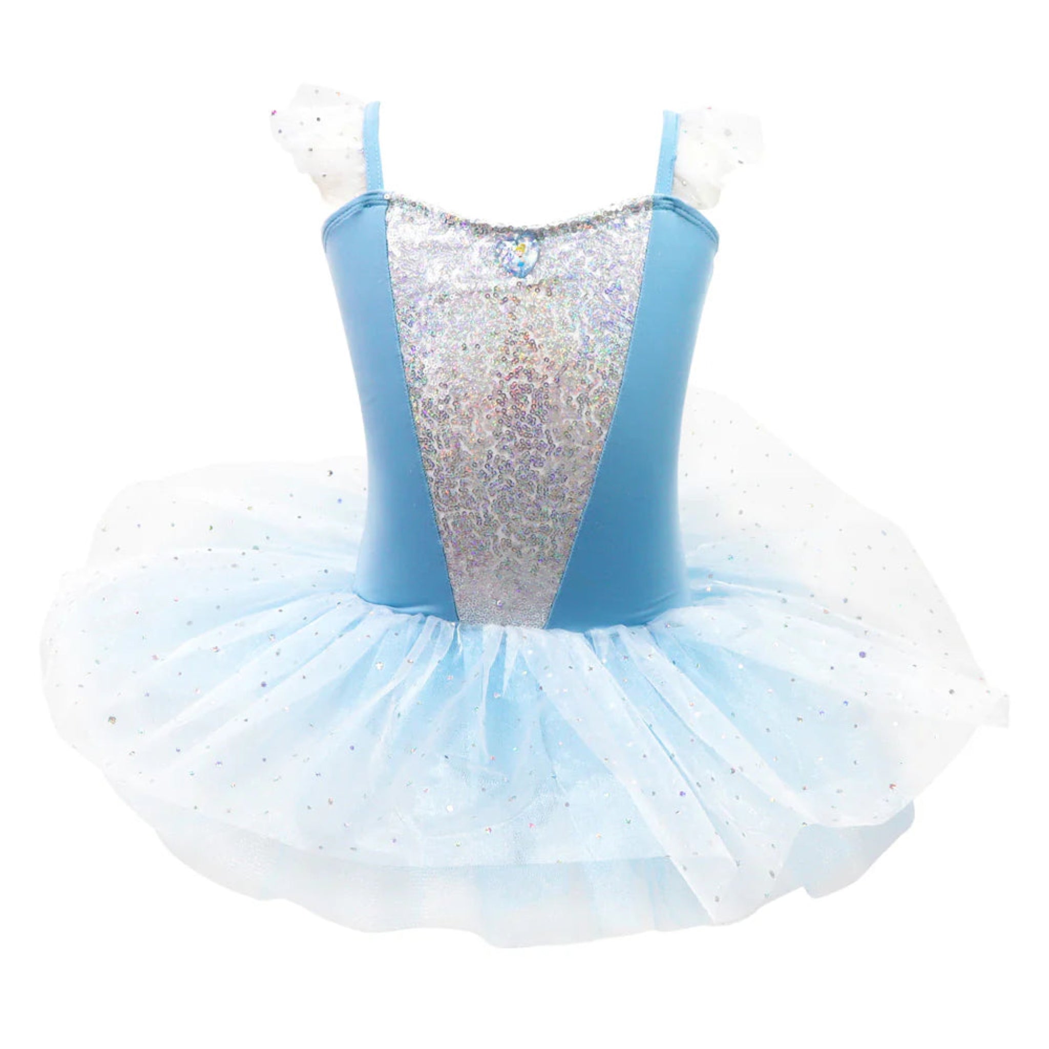 Disney Princess Cinderella’s Sparkling Tutu Dress Inspired by Disney Princess Cinderella. Play pretend and sparkle like Princess Cinderella. This sparkly tutu features a comfortable stretch jersey bodice with a sparkling sequin central panel. The tutu has integrated leotard pants with a multi-layered tulle skirt. The skirt top layer shimmers with light-reflecting glitter spots as do the glitter organza shoulder strap ruffles. Adjustable shoulder straps, Integrated leotard pants and Multi-layered tulle skirt