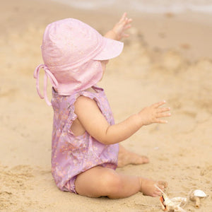 The Toshi Flap Cap Bambini is the ideal baby sunhat. Shading precious babies from the elements is the priority and our flap cap has a contoured neck flap for enhanced sun protection. A UPF 50+ UV rating is provided for all colours. A head tie creates adjustable sizing and the chin tie secures the cap. Made from the finest quality 100% cotton knit, the baby sunhat is gentle to wear, functional and practical. The cap is fully lined for increased comfort.